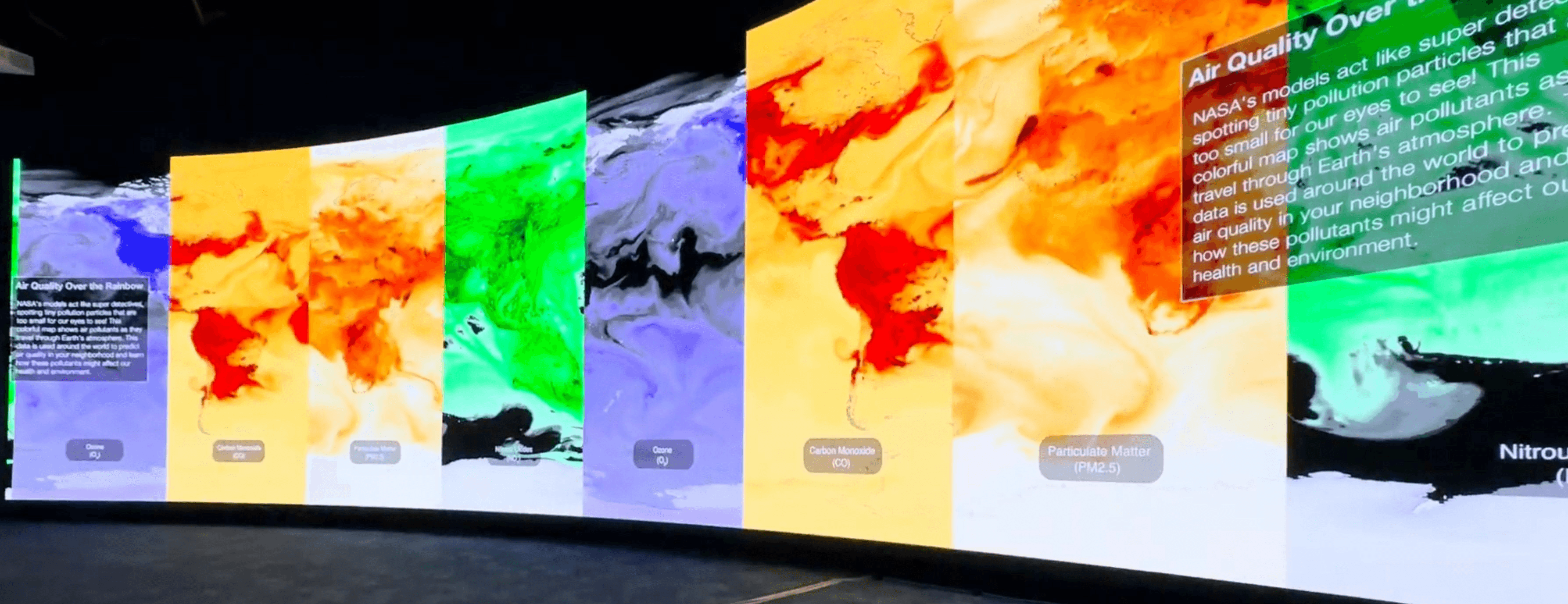 Access our mission control for Earth, powered by NASA Earth observing missions. The Hyperwall is a 30 minute loop of content streamed to your venue. Available on large commercial screens containing near-real-time dashboards, impact stories, and breathtaking science-based visualizations.